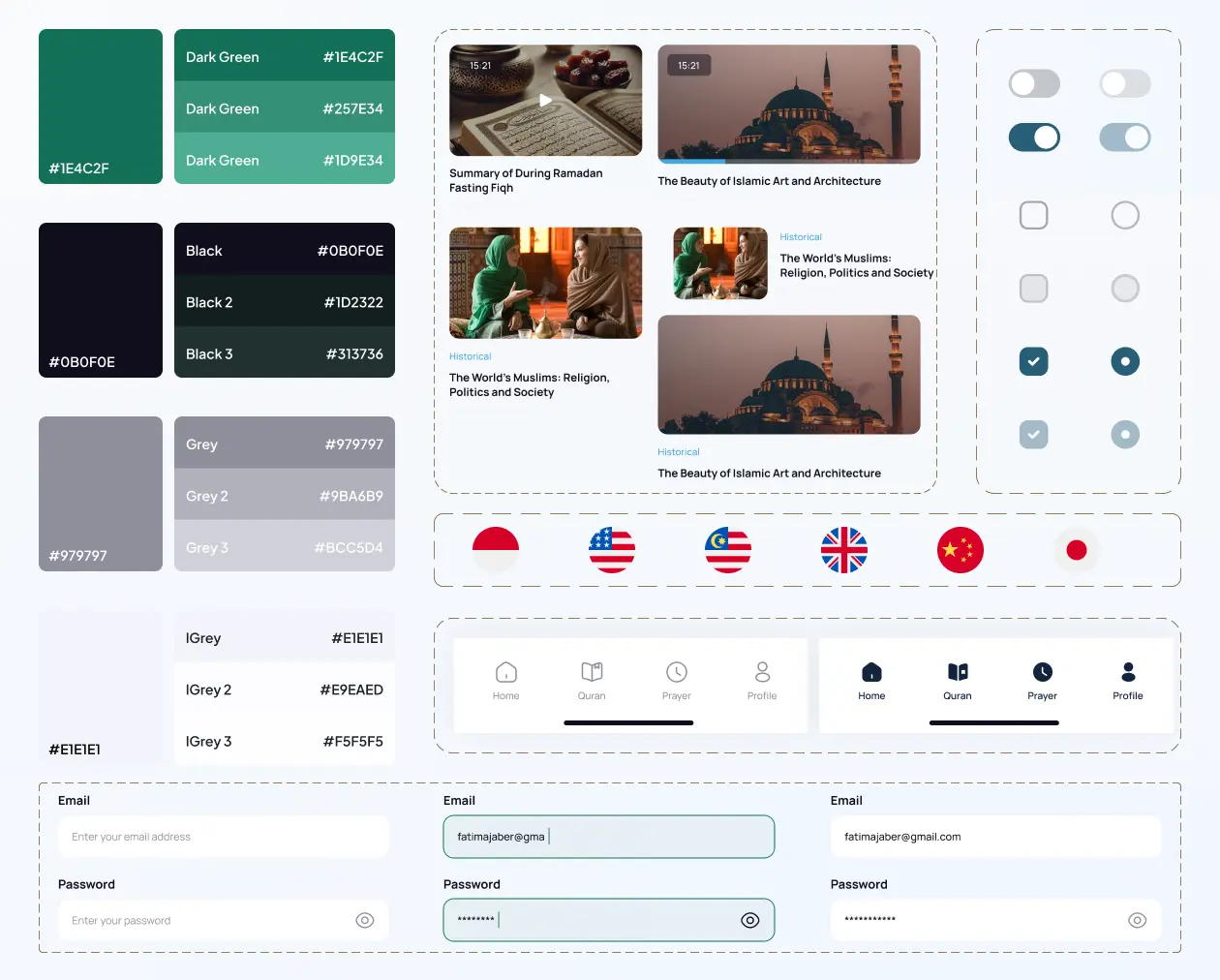 I developed clickable prototypes to test key flows such as onboarding, prayer time settings, and content navigation. I conducted usability testing with a small group of users from different age ranges and cultural backgrounds. Their feedback helped improve core UX patterns, such as surfacing the next prayer time more clearly, simplifying account setup, and improving contrast in dark mode.