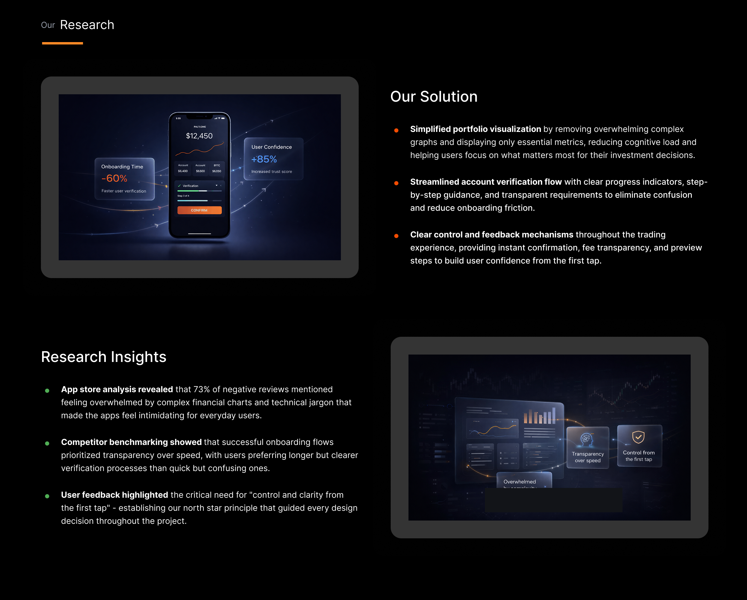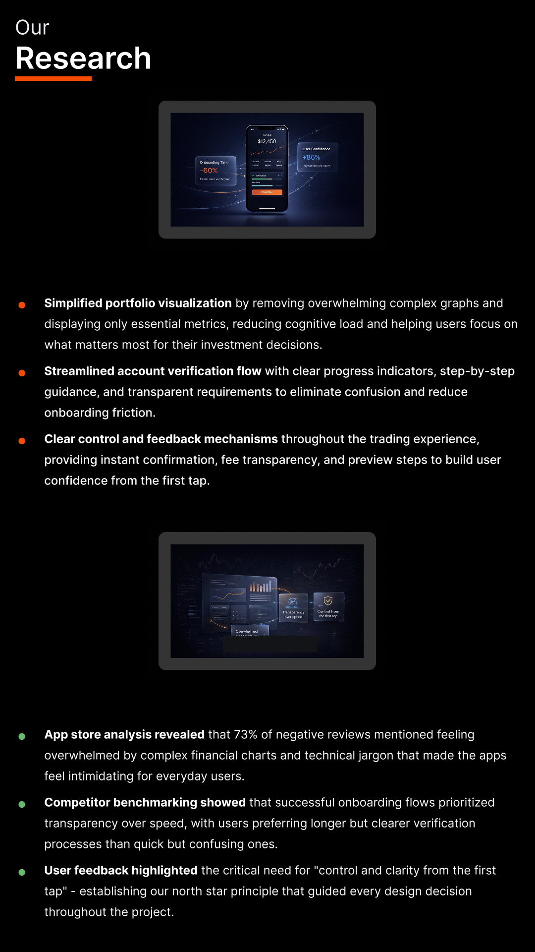 We kicked things off by benchmarking popular investment apps, diving into app store reviews. People often felt overwhelmed by complex graphs or frustrated by confusing account verification steps.