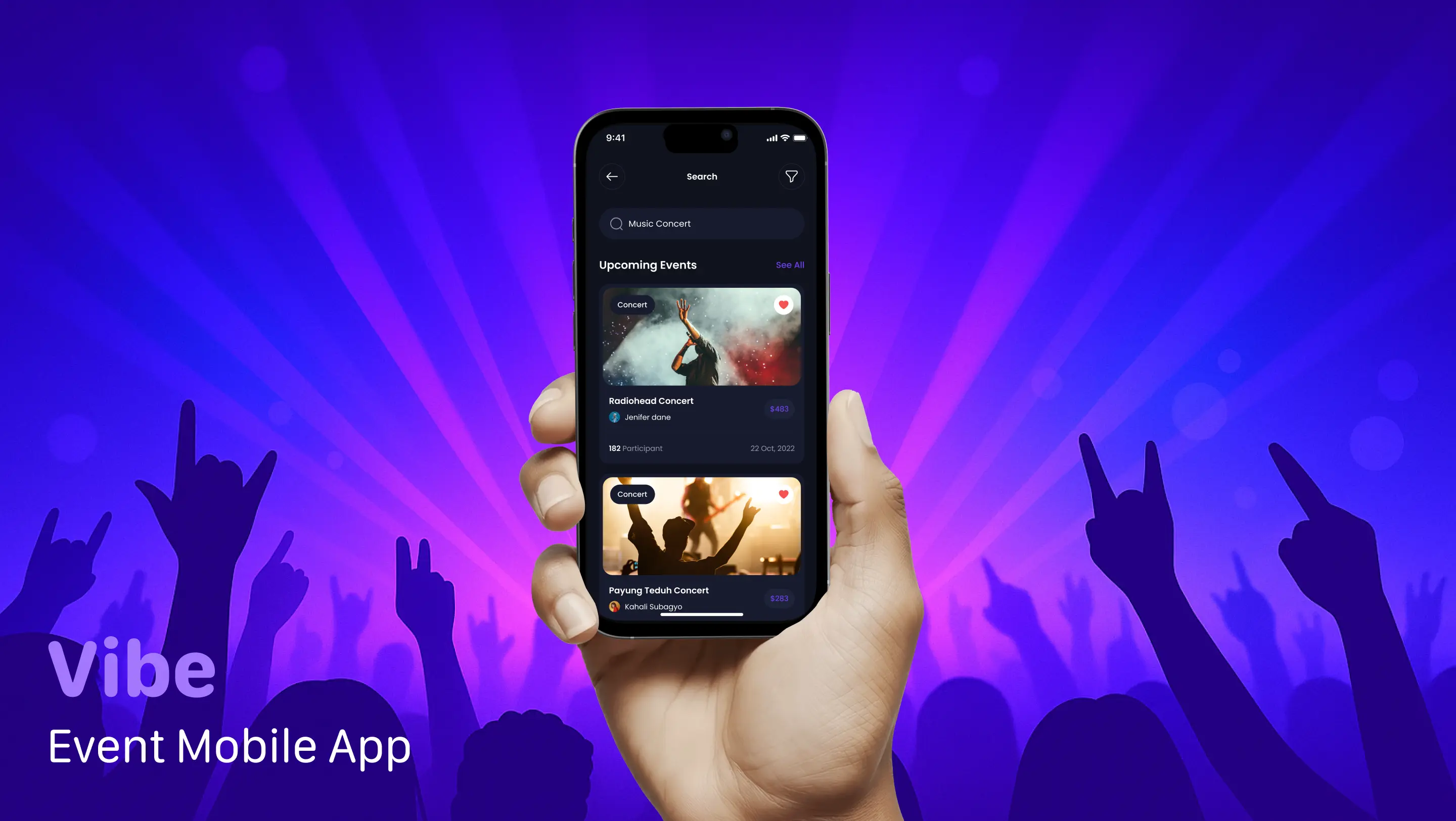 Vibe is a mobile application that enables users to discover, filter, and book events around them—ranging from concerts and workshops to art exhibitions and local tournaments. Designed for real-time browsing, personalized recommendations, and frictionless ticketing, Vibe offers a complete solution for social discovery and digital event management.